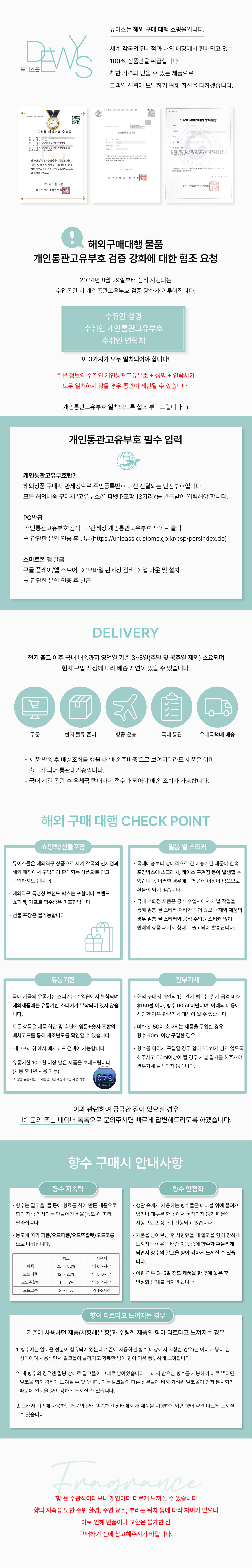 - 해외직배송 상품은 주문완료 후 5일~15일 (주말/휴일 제외) 정도의 배송기간이 소요될 수 있습니다.
